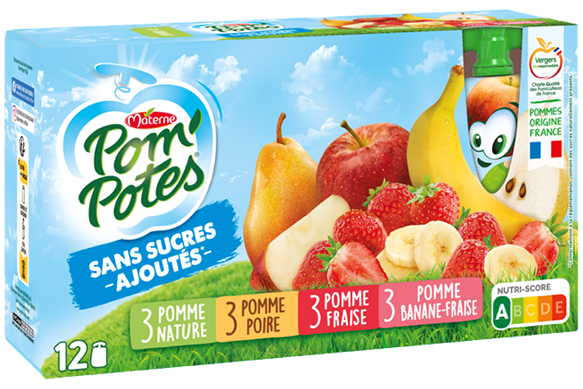 Les pommes utilisées dans nos recettes Pom’Potes® Sans Sucres Ajoutés sont cultivées en France1 et récoltées à la main, et cela est clairement indiqué sur nos étuis ! En plus, nos produits Pom’Potes® Sans Sucres Ajoutés sont fabriqués en France dans notre usine située en Picardie, dans l’Aisne.